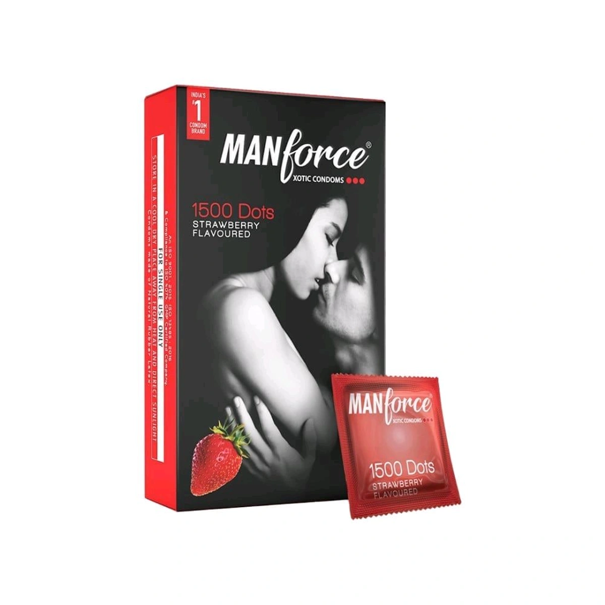 Manforce Xotic Condoms | 1500 Dots | Strawberry Flavoured 1 Pack (10 Sheets)