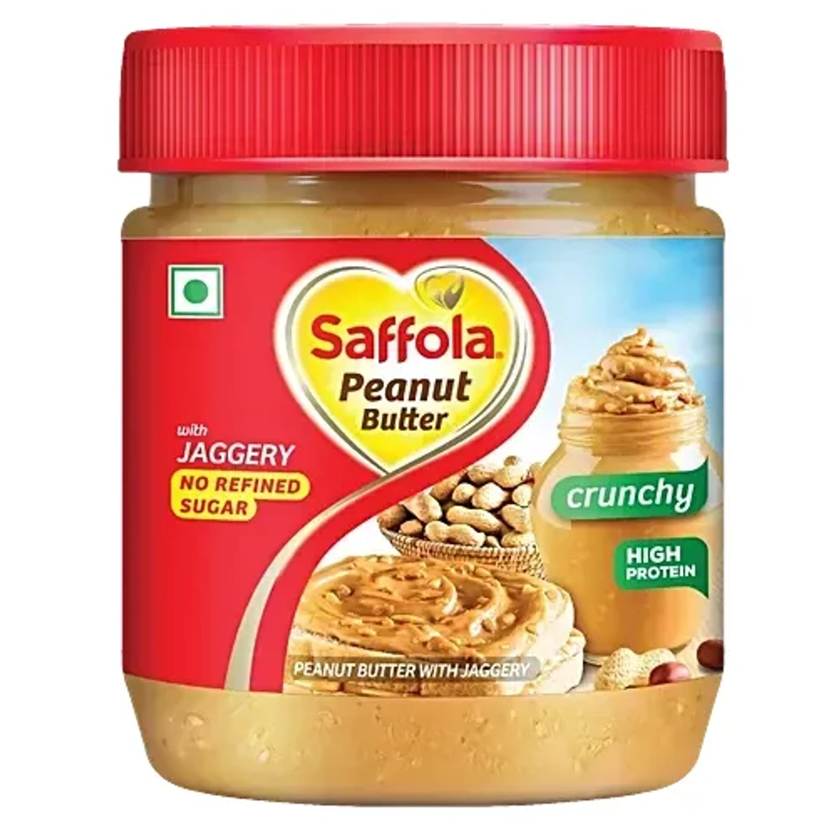 Saffola Peanut Butter - With Jaggery, Crunchy, 350 g Jar