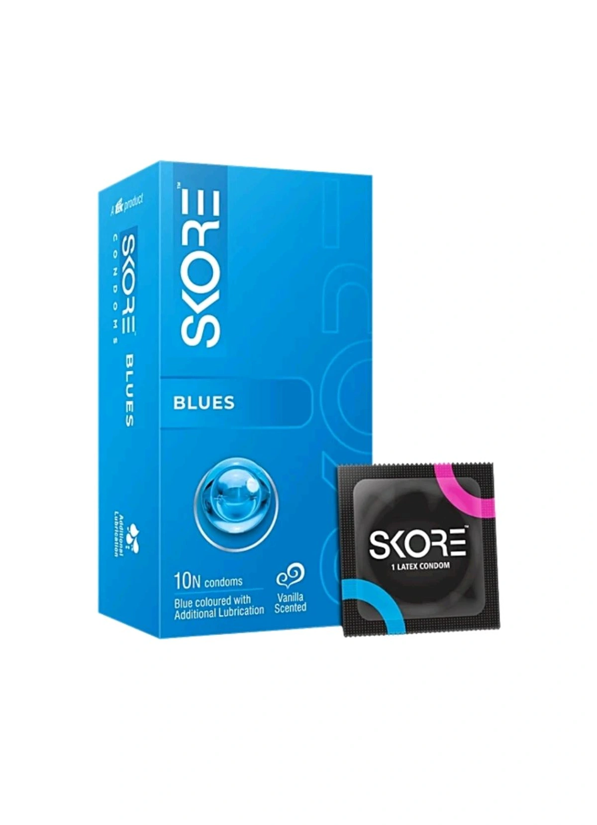 SKORE Blues | Extra Lubrication and Vanilla Scented Condoms 1 Pack ( 10 Sheets)